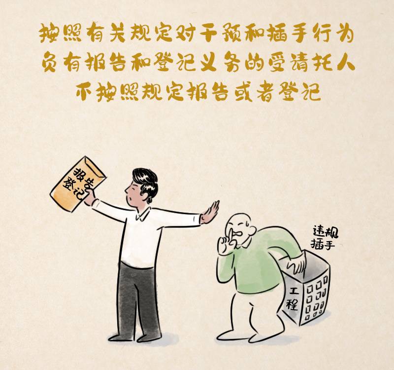 第一百四十三條 按照有關規定對干預和插手行為負有報告和登記義務的受請托人,不按照規定報告或者登記,情節較重的,給予警告或者嚴重警告處分;情節嚴重的,給予撤銷黨內職務處分。