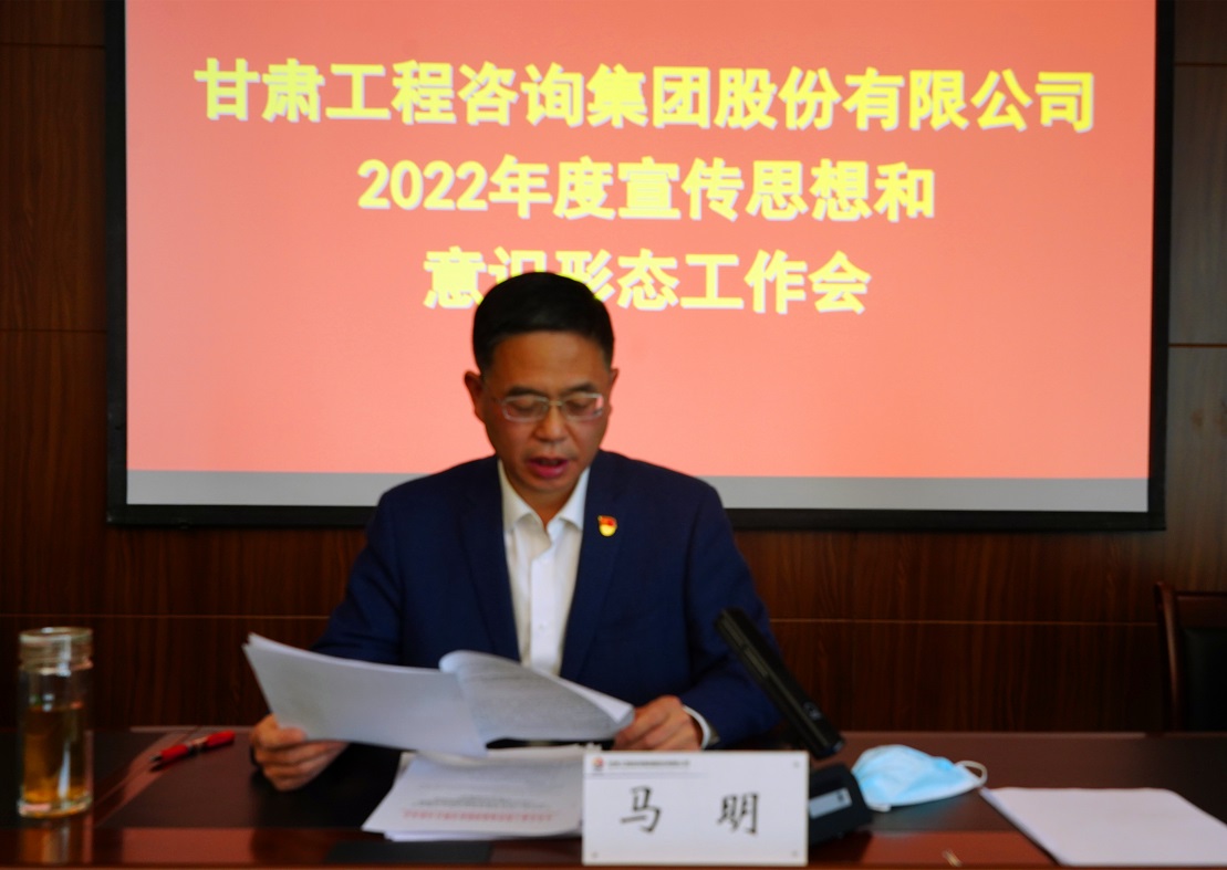 3月28日,甘肅工程咨詢集團召開2022年度宣傳思想和意識形態工作會議,傳達學習了全國、全省宣傳部長會議精神,黨委副書記王春燕總結了2021年度宣傳思想和意識形態工作情況并安排部署2022年度工作,黨委副書記、總經理馬明作講話。黨委委員、監事會主席焦軍毅主持會議,集團公司領導班子成員,相關部門負責人在主會場參加,各子公司黨委書記、董事長(執行董事)、總經理、黨委副書記,相關部門負責人在分會場參加。