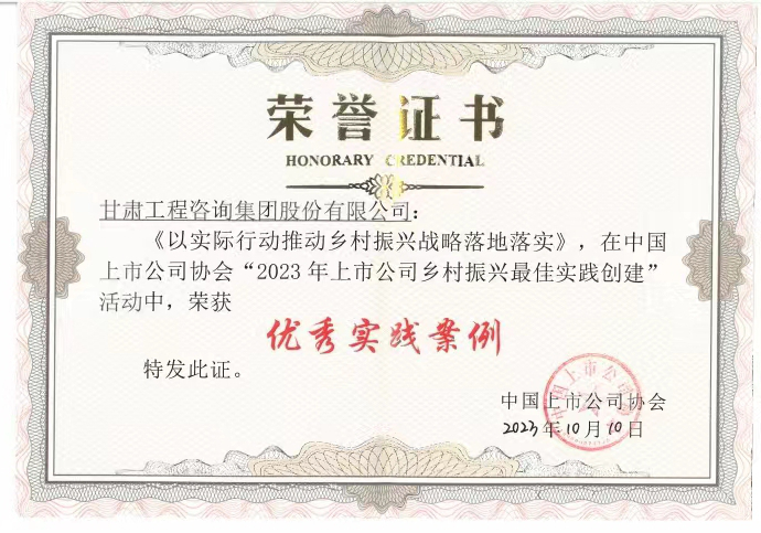 勇擔國企責任 助力鄉村振興——甘肅工程咨詢集團榮獲上市公司鄉村振興優秀實踐案例