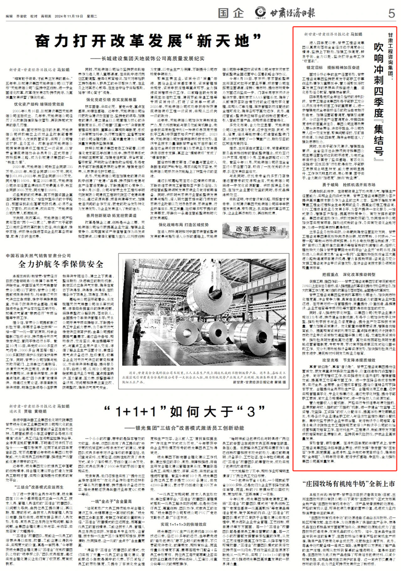 倒排工期、掛圖作戰……甘肅工程咨詢集團緊盯年底前完成70%以上主體任務目標,深入推進國企改革深化提升行動各項任務,加大改革工作力度,有力推動改革任務落實落地,全面提升改革質效。