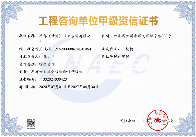 6月下旬,經(jīng)中國(guó)工程咨詢(xún)協(xié)會(huì)評(píng)審,甘肅工程咨詢(xún)集團(tuán)旗下西部(甘肅)規(guī)劃咨詢(xún)有限公司,成功取得工程咨詢(xún)單位綜合甲級(jí)資信和7項(xiàng)專(zhuān)業(yè)甲級(jí)資信,實(shí)現(xiàn)了我省工程咨詢(xún)“綜甲”從無(wú)到有的歷史性突破。西部(甘肅)規(guī)劃咨詢(xún)公司是甘肅工程咨詢(xún)集團(tuán)著眼深化改革、優(yōu)化資源配置、培育發(fā)展新業(yè)務(wù)而創(chuàng)建的綜合咨詢(xún)技術(shù)服務(wù)企業(yè)。公司圍繞貫徹落實(shí)國(guó)家重大戰(zhàn)略和全省發(fā)展規(guī)劃,組建專(zhuān)家智庫(kù)團(tuán)隊(duì),主動(dòng)開(kāi)展戰(zhàn)略性、前瞻性研究,先后高質(zhì)量完多項(xiàng)重大咨詢(xún)?nèi)蝿?wù)。