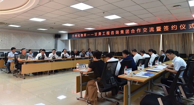 8月15日,甘肅工程咨詢集團黨委書記、董事長張佩峰一行到訪中國科學院蘭州化學物理研究所,與所長周峰座談交流并簽訂科技合作協議。協議的簽訂,標志著雙方合作進入新階段。蘭州化物所黨委委員張永勝,集團公司副總經理曹慶,黨委委員、副總經理白鑫參加。