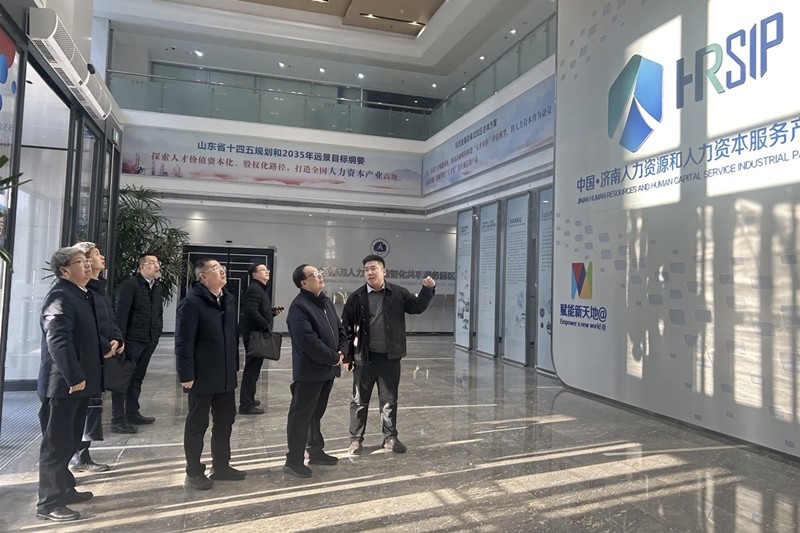 在山東人才集團,張佩峰一行與山東國投公司黨委副書記、山東人才集團黨委副書記、總經(jīng)理楊光軍,山東國投公司黨委常委、副總經(jīng)理,山東人才集團黨委委員、副總經(jīng)理何偉及相關(guān)負責(zé)人座談交流。楊光軍介紹了山東人才集團與山東國投公司重組整合后“二次創(chuàng)業(yè)”的戰(zhàn)略規(guī)劃,以“投資于人”為核心發(fā)展理念,聚焦人才“引、服、投、數(shù)”業(yè)務(wù)主線的發(fā)展實踐。雙方圍繞高端人才“引育留用”等領(lǐng)域進行深入交流并達成共識,希望在高端人才引進、專業(yè)化人才培養(yǎng)、人才數(shù)據(jù)共享、產(chǎn)才融合賦能等領(lǐng)域開展務(wù)實合作,推動雙方優(yōu)勢互補、資源互通,為服務(wù)國家黃河戰(zhàn)略、推動區(qū)域協(xié)調(diào)發(fā)展提供堅實人才支撐。