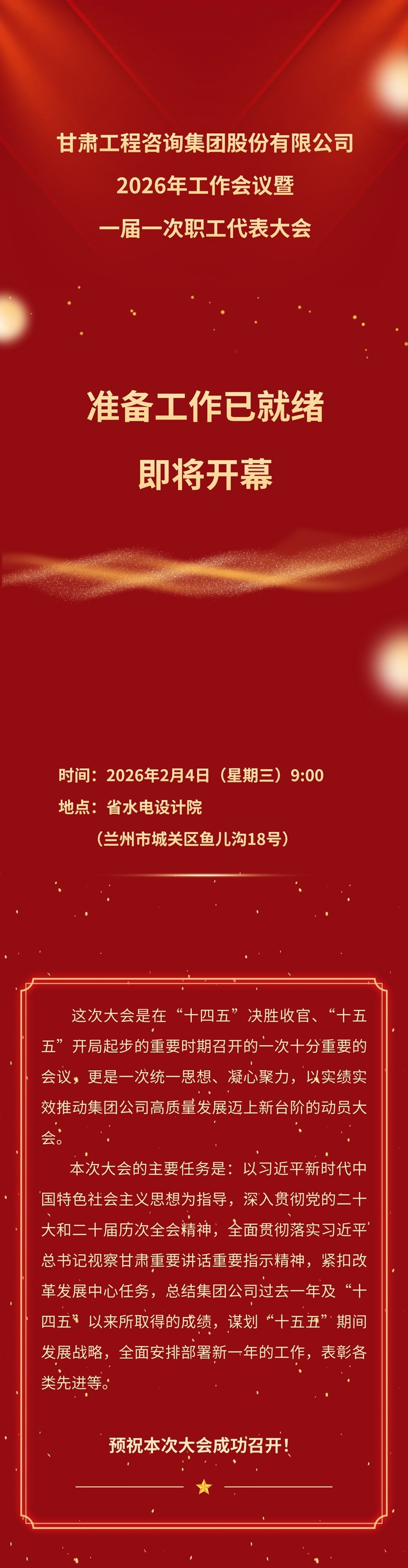 甘肅工程咨詢集團股份有限公司2026年工作會議暨一屆一次職工代表大會即將召開