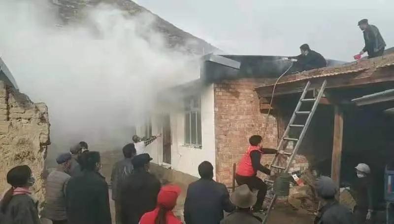 聽到村民們的呼救聲,正在村口疫情防控監(jiān)測點(diǎn)值守的幫扶工作隊(duì)隊(duì)員、包村干部與鎮(zhèn)領(lǐng)導(dǎo)、村“兩委”干部及志愿者一起,第一時(shí)間沖向了火災(zāi)現(xiàn)場,實(shí)施開展撲救工作。現(xiàn)場火勢兇猛,盡管眾人一起用水傾澆,卻仍未阻止火勢蔓延。瞬間,屋頂?shù)臋M梁也燒著了,發(fā)出噼啪的響聲,房頂隱約在搖晃,可大家依然奮不顧身地救火,甚至有人沖上了危險(xiǎn)的屋頂。