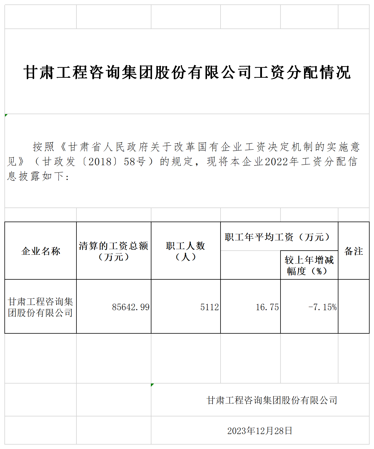 甘肅工程咨詢集團股份有限公司董事、監事、高級管理人員2022年度薪酬情況及甘肅工程咨詢集團股份有限公司工資分配情況