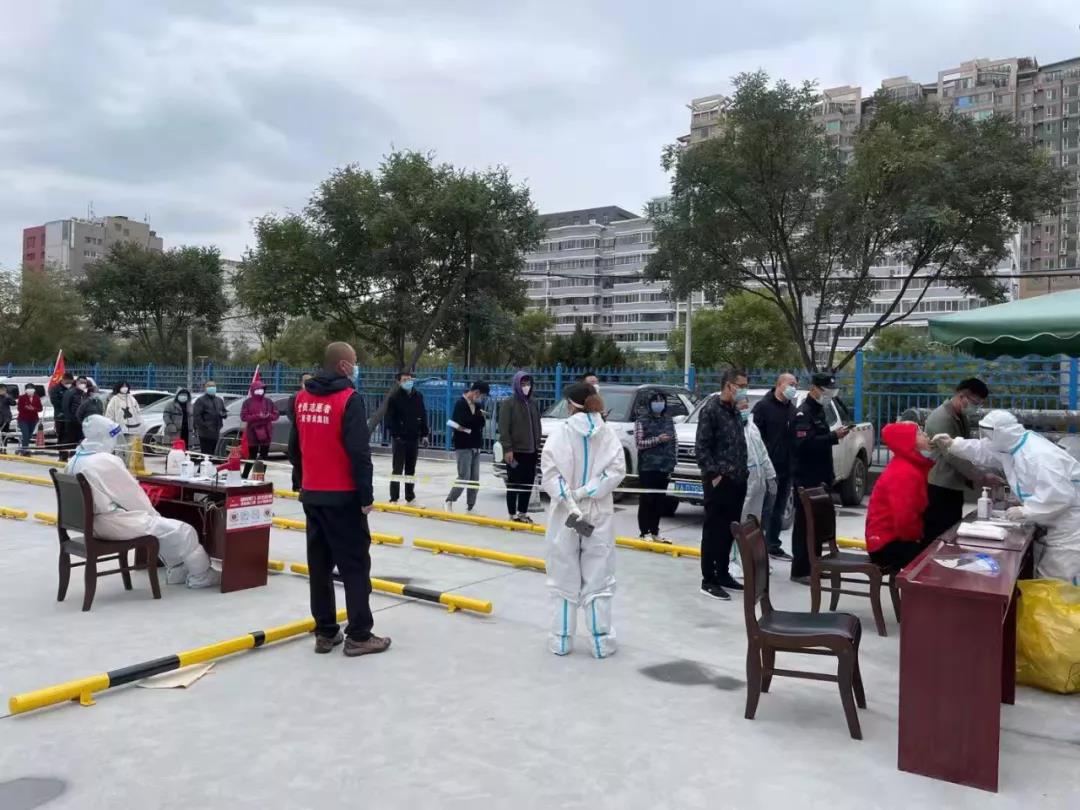 “您好”“請(qǐng)不要擁擠”“提前打開健康碼”……這是土木工程院的后勤管理部工作人員在有序指揮前來(lái)進(jìn)行核酸檢測(cè)的職工和家屬。