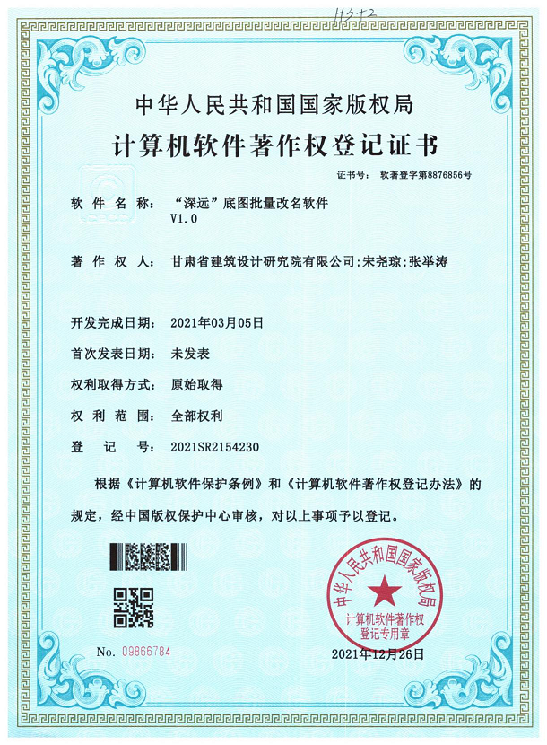 解決好這個問題,事關底圖檔案數字化工作質量和進度。建筑設計院研發人員以《甘肅省建筑設計研究院有限公司科技項目管理細則》為指導,強化自主創新,在總工程師張舉濤的帶領下,由技術質量部牽頭負責,宋堯瓊等研發人員參與,多次進行掃描現場調研,經過近一年的開發測試,自主研發出了適用于設計院模式的“‘深遠’底圖后處理系統”和“‘深遠’底圖批量改名軟件”,并將研發成果申報國家版權局。