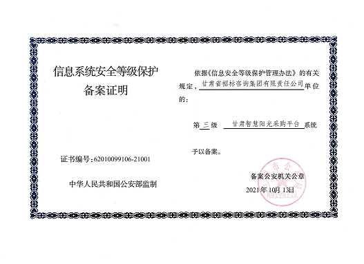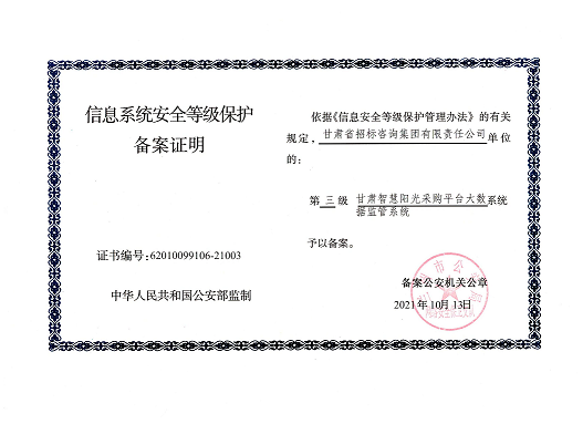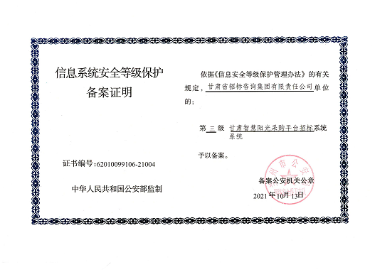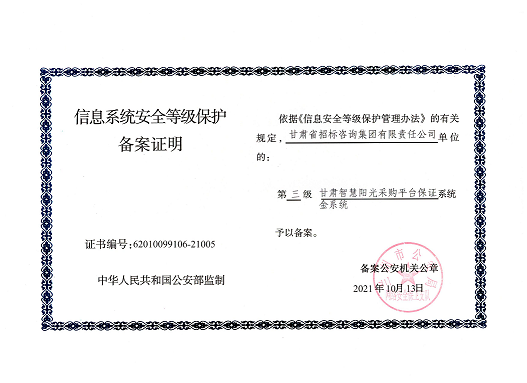 近日,由招標咨詢集團負責(zé)開發(fā)建設(shè)的甘肅智慧陽光采購平臺系統(tǒng),以及甘肅智慧陽光采購平臺采購網(wǎng)系統(tǒng)、大數(shù)據(jù)監(jiān)管系統(tǒng)、招標系統(tǒng)、保證金系統(tǒng)、專家管理系統(tǒng)通過國家三級等保認證,系統(tǒng)管理安全能力獲得業(yè)界最高標準。