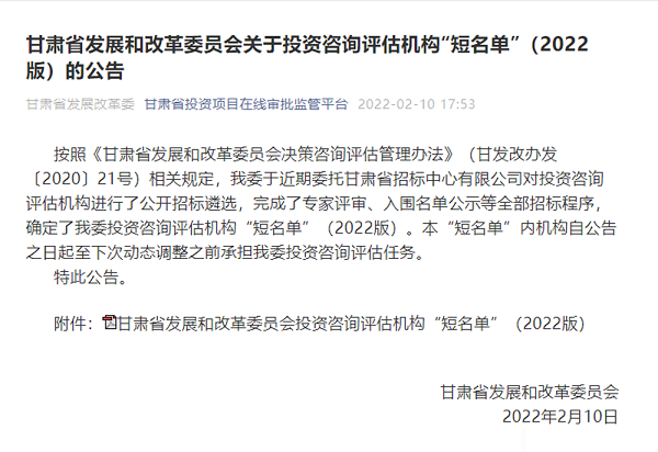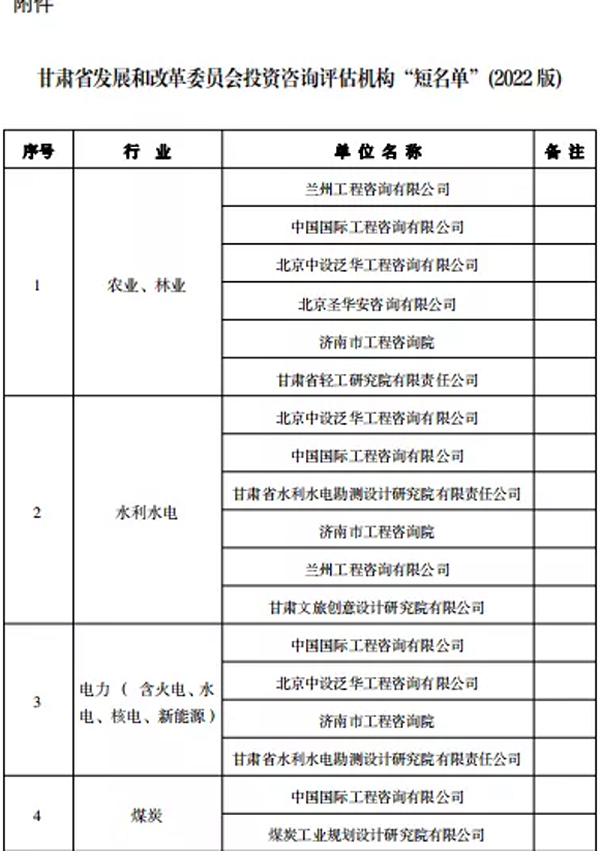 近日,省發(fā)改委公布2022年進(jìn)入省發(fā)改委投資咨詢?cè)u(píng)估機(jī)構(gòu)企業(yè)名單,甘肅省水利水電勘測設(shè)計(jì)研究院有限責(zé)任公司成功入圍三個(gè)行業(yè)板塊。
