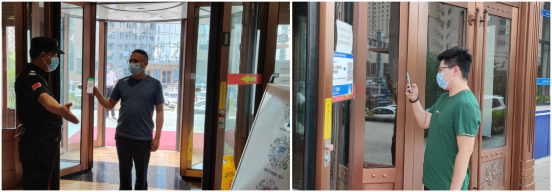 嚴守“入口關”。在辦公樓入口處,安保人員嚴格做到“一掃三查”,查看職工佩戴口罩,查驗健康碼和行程碼,進行體溫檢測,最大限度地阻斷輸入性疫情風險。