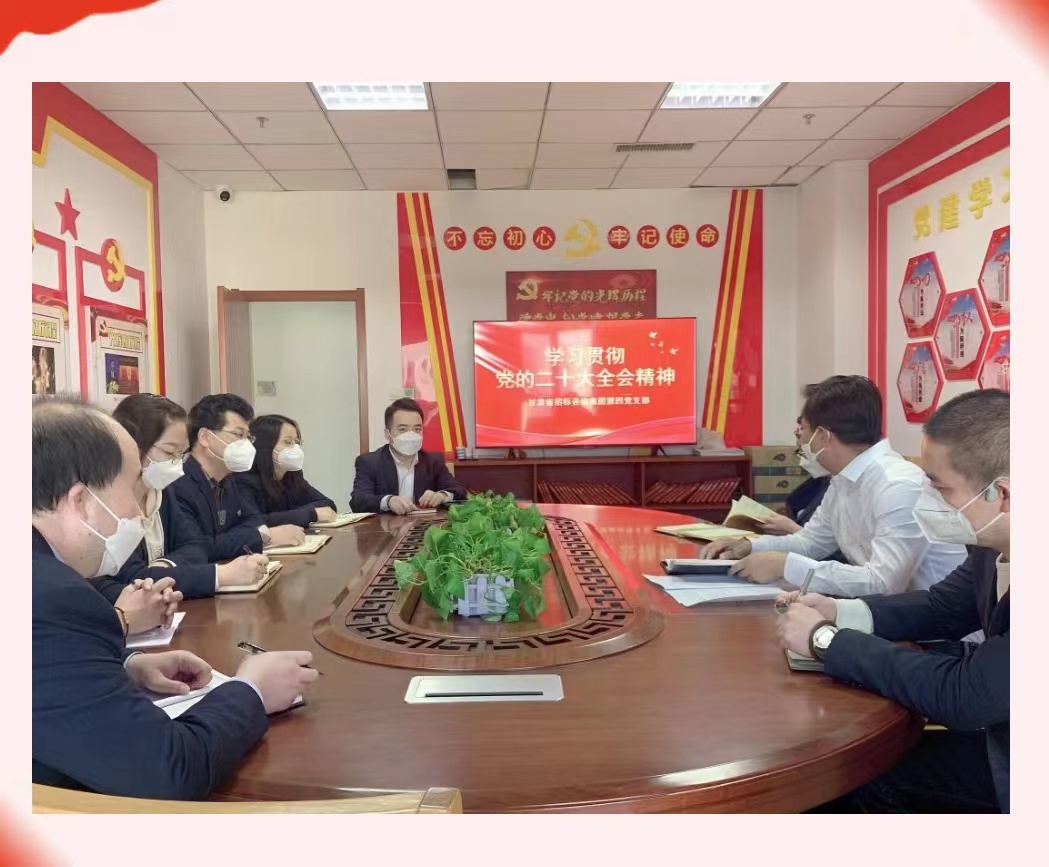 黨的二十大勝利召開以來,甘肅省招標(biāo)咨詢集團(tuán)有限責(zé)任公司黨委高度重視,將學(xué)習(xí)宣傳貫徹黨的二十大精神作為當(dāng)前和今后一個(gè)時(shí)期的首要政治任務(wù),通過多形式、全覆蓋的方式,積極抓好貫徹落實(shí),持續(xù)推動(dòng)黨的二十大精神轉(zhuǎn)化為加快各項(xiàng)工作高質(zhì)量發(fā)展的強(qiáng)大動(dòng)力,努力促使黨的二十大精神在招標(biāo)咨詢集團(tuán)迅速落地生根、開花結(jié)果。