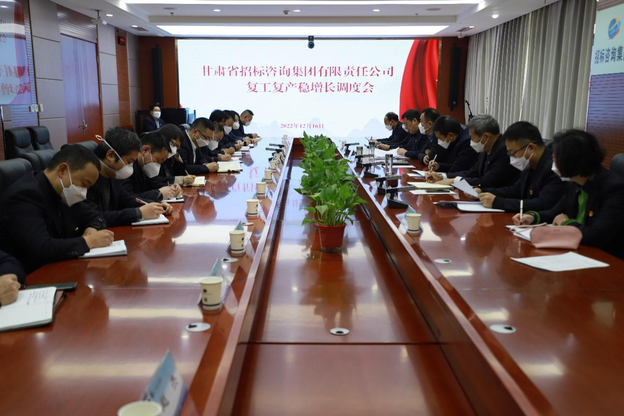 近日,甘肅省招標咨詢集團有限責任公司召開復工復產穩(wěn)增長調度會,傳達學習全省工業(yè)復工復產穩(wěn)增長調度會和集團公司復工復產穩(wěn)增長調度會精神,分析1-11月生產經營情況,安排部署近期及來年相關工作。會議由公司黨委書記、董事長牛茺主持。招標咨詢集團領導班子成員、機關各部門及各子公司負責人參加會議。招標中心、金安公司作交流發(fā)言。