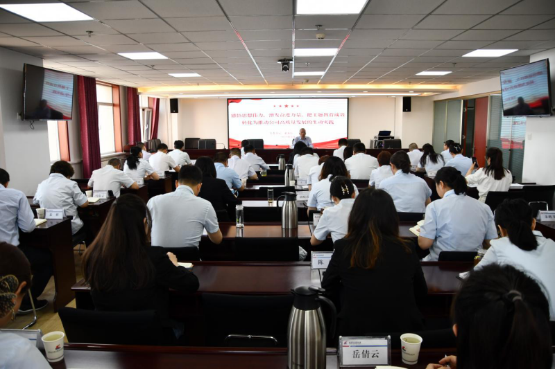 5月19日,省交通監(jiān)理公司黨委書記、董事長、主題教育領(lǐng)導小組組長為公司黨員干部講主題教育專題黨課。集團公司主題教育第三指導組成員到會指導。公司班子成員,機關(guān)全體干部、子公司全體黨員參會。