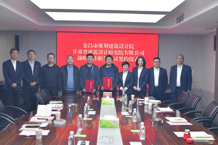 11月7日,省建筑設計院與金昌市規劃建筑設計院戰略合作協議簽訂儀式在蘭州舉行。金昌市規劃建筑設計院董事長魯得玉、副總經理王鋒輝和省建筑設計院黨委副書記、總經理周文新,副總經理王璐參加簽約儀式。
