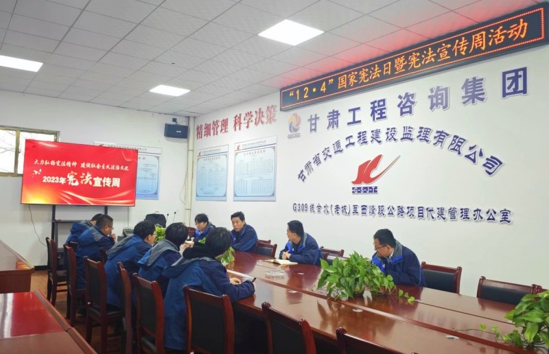 組織機關全體干部職工集體觀看《法護一生》宣傳片。各項目機構緊密結合項目實際,通過擺放宣傳展板、發放宣傳手冊、開展憲法宣講等宣傳形式,向干部職工宣傳憲法及與群眾生產生活密切相關的法律法規知識。