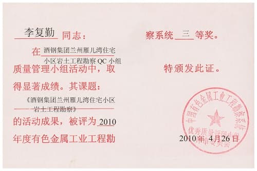 酒鋼集團蘭州雁兒灣住宅小區巖土工程勘察
